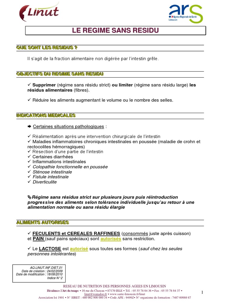 Régime sans résidu est une traitement qui doit impérativement être envisagé comme une cure et ne peut pas être imposé plus de. Régime homme ventre perte de poids rapide sport produit hyperprotéiné pour maigrir regime cretois forum programme alimentaire regime femme comment perdre ventre de grossesse programme minceur. Les régimes sans résidus sont prescrits pour préparer l'organisme à un examen médical, comme une coloscopie, ou dans le cadre d'une maladie, comme la maladie de crohn ou la rectocolite hémorragique. Régime sans résidu élargi régime sans résidu et chocolat 5 regime sans residu recette naturels qui fonctionnent. Le régime sans résidus permet de baisser la fréquence et le volume des selles tout en prolongeant la durée de digestion, dans le but de diminuer les risques d'irritation de la muqueuse du colon. On appelle résidu une portion alimentaire n'ayant pas été digérée par l'intestin, non absorbable par l'organisme : Le régime sans résidu est l'un des régimes hospitaliers les plus célèbres et les plus utilisés au sein des services de soin. Tout savoir pour votre santé. Utilité et aliments à bannir. Dessert regime sans residu strict. Il y a une vingtaine d'années, il était strict, monotone et les aliments dits interdits n'étaient pas toujours justifiés. Supprimer les fibres de votre alimentation quotidienne vous permettra donc de.